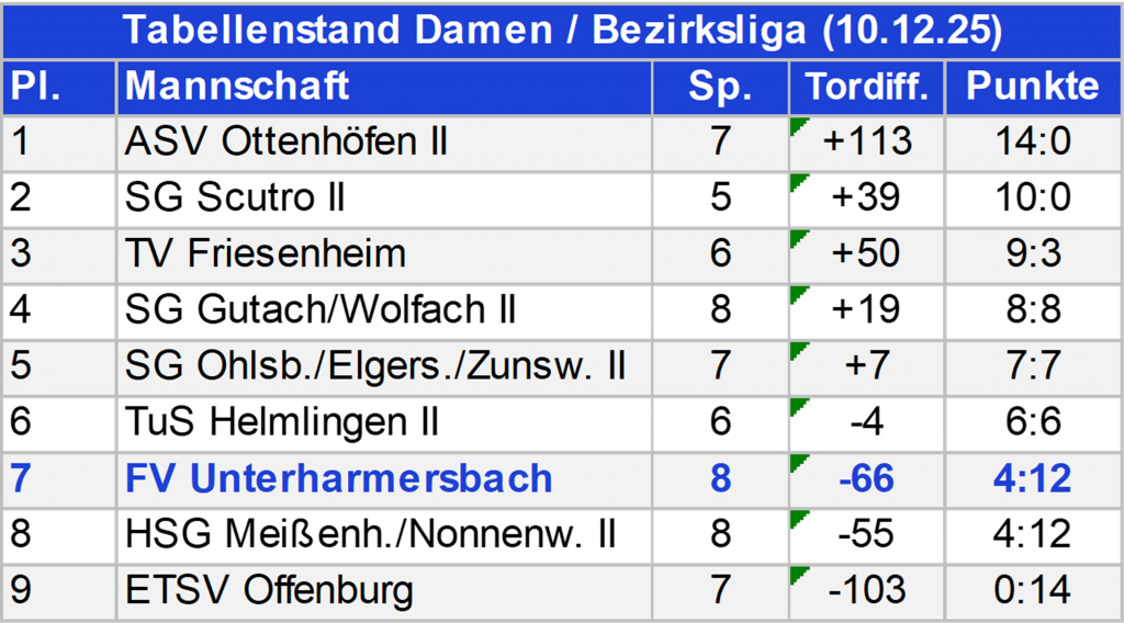 Die A-Jugend ist zum wiederholten Male mit einer Hand am Siegerpott. Leider wieder ohne adäquat gelerntem Torwart in der Altersklasse müssen die Jungs erneut die zwei Punkte auswärts liegen lassen. Viele tolle Aktionen, tolle Tore, aber auch einiges Verworfenes reicht am Ende nicht gegen die JSG ZEGO, die mit einem 15-Tore-Mann das Spiel für sich entscheidet. Toll auch wieder, dass die Gemeinschaft und das Zusammenspiel mit den vier Friesenheimer Gastspielern so gut funktioniert. Dran bleiben, jetzt geht’s 2026 in die Platzierungsrunde gegen die SG ERA (Ettenheim/Ringsheim/Altdorf), SG Freiburg und SG Bötzingen/March. Die ersten zwei Punkte sind nicht mehr weit