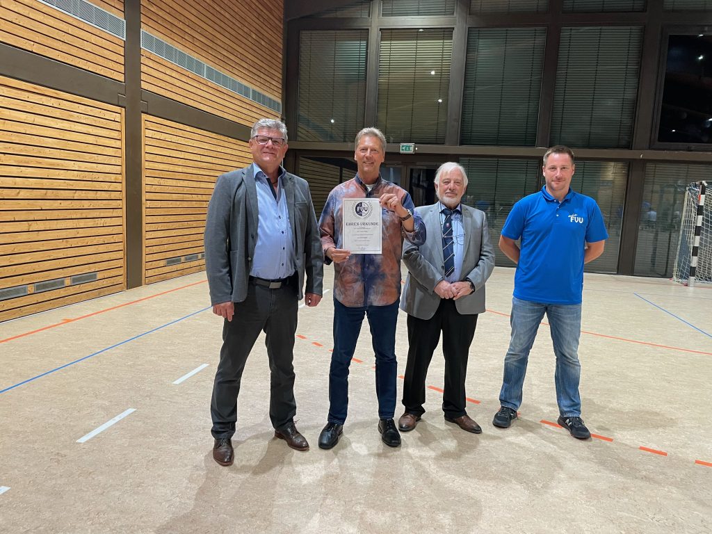 Eine besondere Ehre galt in der Generalversammlung des FV Unterharmersbach Tommi Weng. Er war maßgeblich an der Gründung der Handballabteilung